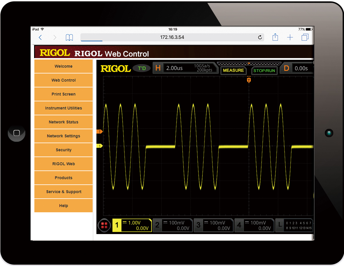 ![]() MSO8000A series provides a variety of external interfaces, including USB HOST & DEVICE, LAN (LXI), HDMI, TRIG OUT, and USB-GPIB (opt.). The oscilloscope is in compliance with the standards specified in LXI Device Specification 2011. The LXI web page is available to access via the LAN interface. You can purchase the USB-GPIB interface converter from RIGOL to enjoy the reliable GPIB communication service. It also provides HDMI video output interface. |