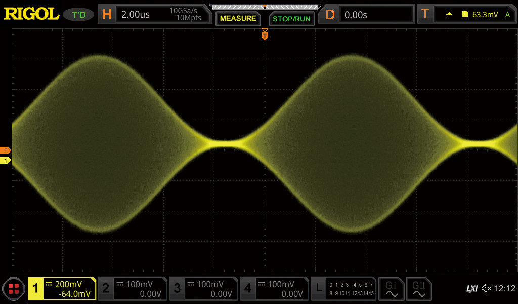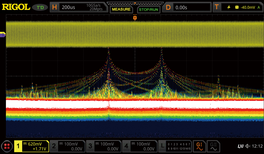 Engineers often have to spend a lot of time and efforts in locating the problem in design and debugging. Therefore, a proper debugging tool will help engineers to work more efficiently. MSO8000A series digital oscilloscope can provide the waveform capture rate of up to 600,000 wfms/s, so that the glitches and infrequent events in waveforms can be quickly identified, greatly improving the debugging efficiency for the engineers. 256-level intensity grading display can reflect the occurrence frequencies of the infrequent events. MSO8000A series has added the color persistence function, which can highlight the signal of different probabilities with a different color grading. You can set the persistence time to control the duration time for the waveforms to be displayed on the screen, so that the display capability of the infrequent events can be further enhanced. |
