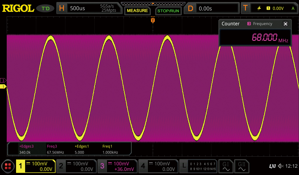 Figure 3. The full-memory hardware measurement can measure accurate frequency value of the waveforms with 340k rising edges.