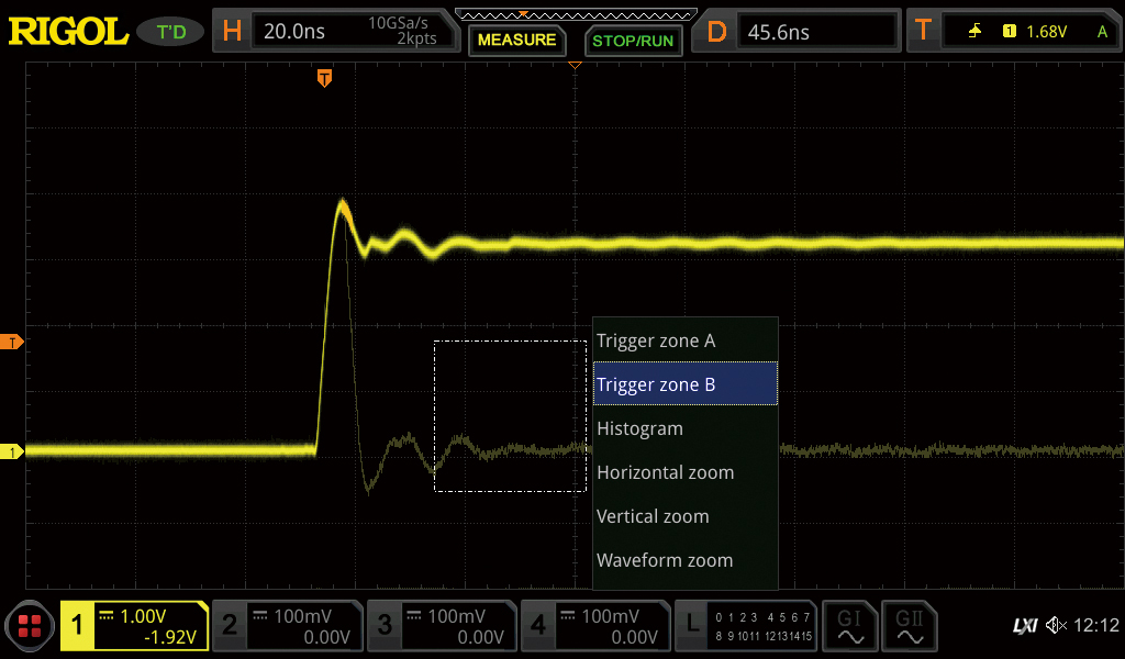 Figure 6. Draw a rectangle on the transient exception signal and select Trigger zone A.