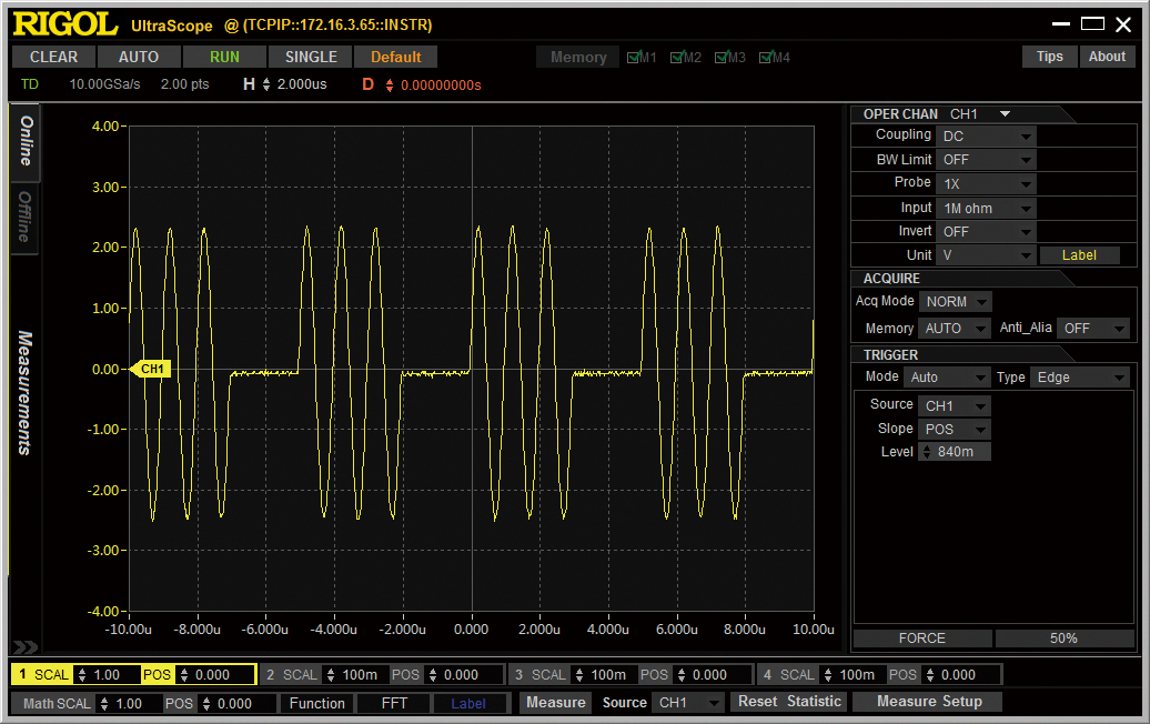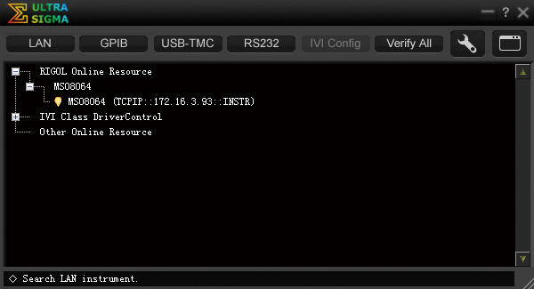 MSO8000A series can be operated through Web Control, VNC control, and Ultra Scope control analysis software. You can use them to migrate the instrument control and waveform analysis to the PC, and then click the mouse to operate easily. You only need to input the IP address of the oscilloscope into the address bar of the Web browser to open the Web Control interface. The screen displayed on the Web Control interface is the same as what displayed on the MSO8000A seies. You can use the mouse to click the menus in the Web Control interface to complete the waveform control, measurement, and analysis. In the Web Control interface, the basic information of the instrument is displayed, and you can also upload or download the files of the oscilloscope, control with the SCPI commands, set or modify the network status. You can download the VNC client from its official website. Then input the IP address of the instrument into the address bar of the client. You can view the screen display. You can operate the MSO8000A series with the mouse to click the menus in the VNC interface to complete the waveform control, measurement, and analysis. MSO8000A series has powerful data analysis function, which is not only limited to analyzing the data of the oscilloscope itself. The Ultra Scope control analysis software can not only realize the basic control for the instrument, but also can export the 500 M waveform big data to the PC, and then make measurements, math operation, and analysis of the data offline. It also supports real-time monitoring of the oscilloscope status and multi-pane windowing on multiple instruments. The available remote control interfaces include USB, LAN, and GPIB, and you can select any one of them to realize remote control. |